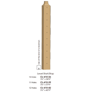CL-410-36 Level Start/Stop 3 1/2" x 34 3/8" Cable System Newel Post. (10 Holes.) CABLE SYSTEM: Cable fittings may be installed directly into the wall at the end of a level run, or they can be installed into a newel post at the end of the run that is placed next to the wall. If ending a level run with a newel post, select the CL-410-36 for 36" level rail height. Select the CL-410-39 for 39" level rail height. Select the CL-410-42 for 42" level rail height. Each newel post includes a 3/4" x 2" wood dowel (Dowel) for attaching the 684 Handrail.